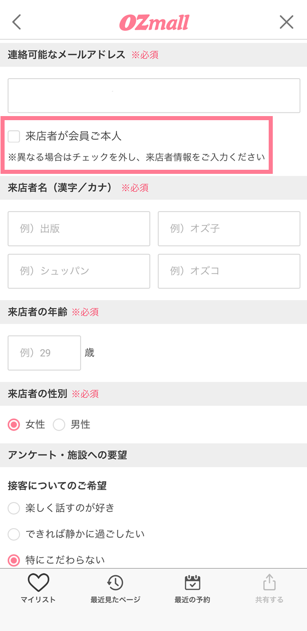 オズモールでは、会員ご本人以外のご予約を、代理でお申込みいただくことが可能です。