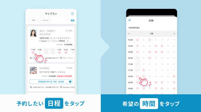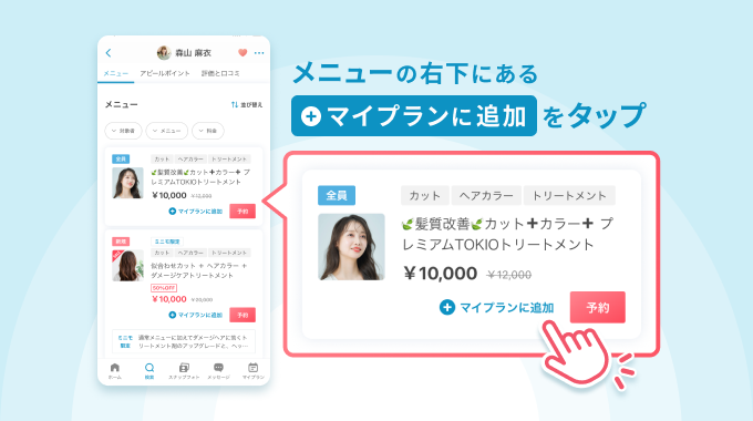 - 予約リクエストのみのメニューはマイプランに追加できません。