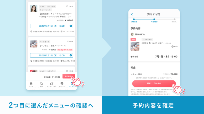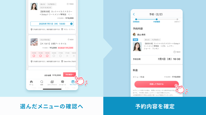 2.「予約確認」へをタップし、メニュー内容を確認後、「同意して予約する」で完了