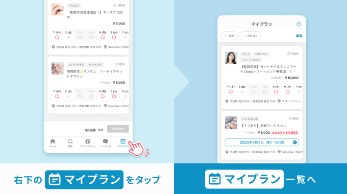 1.「マイプラン」から気になるメニューの日時を選択